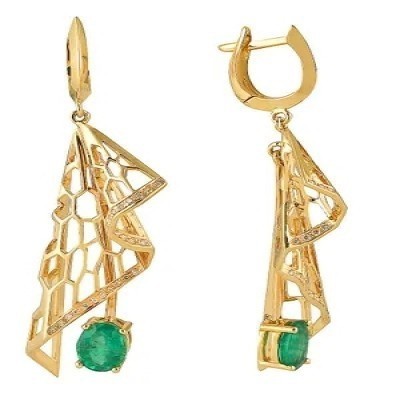 Шикарные серьги из желтого (лимонного) золота с изумрудами и бриллиантами для торжественных случаев и важных событий.