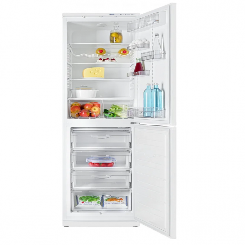 Холодильник с морозильником ATLANT ХМ 6025-031 оснащен специальным терморегулятором, при помощи которого вы сможете самостоятельно подобрать мощность подачи холода, что избавит вас от необходимости в частом размораживании устройства. В модели ATLANT ХМ 6025-031 предусмотрено несколько больших стеклянных полок, выдвижные ящики для овощей и фруктов, отделение для хранения бутылок с напитками, а также навесные полки для продуктов.